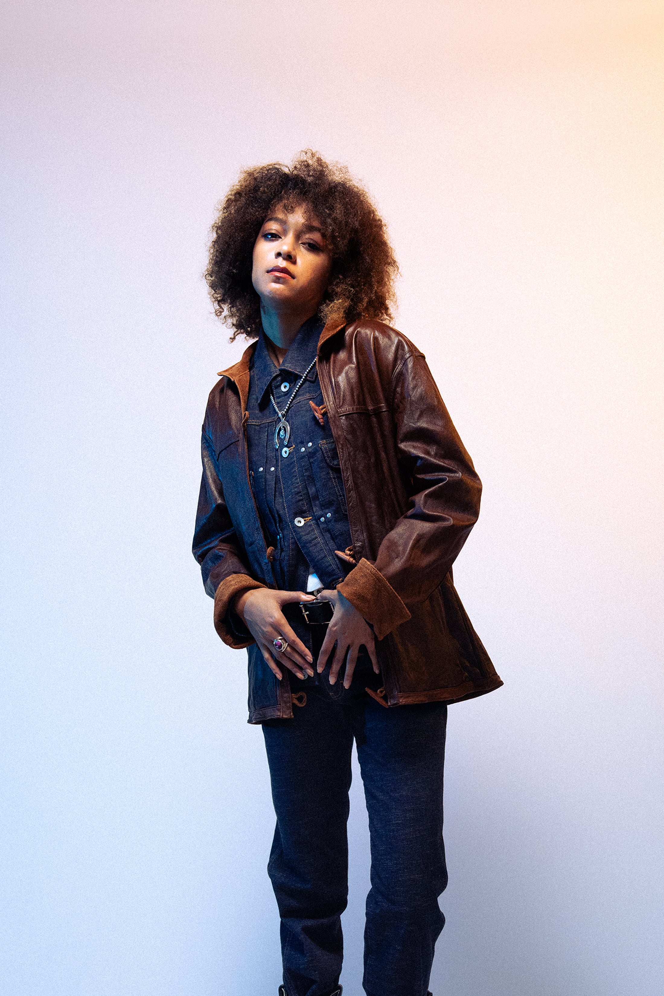 プルアップされたオイルのツヤ感、感触の良いタッチ、そして軽量で柔らかさが最大の特徴である、レザージャケット。本来手袋用に使用される北米原皮を使用することで、キメ細かさ、軽さの再現を可能としたオリジナルレザー。光沢とムラのある独自の表情を持つスムース面、ランダムで粗野な起毛感が特徴のスエード面、どちらでも着用可能なリバーシブル仕様。