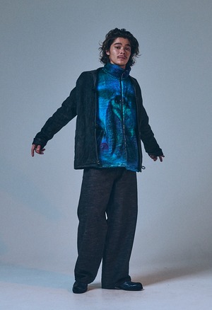 プルアップされたオイルのツヤ感、感触の良いタッチ、そして軽量で柔らかさが最大の特徴である、レザージャケット。本来手袋用に使用される北米原皮を使用することで、キメ細かさ、軽さの再現を可能としたオリジナルレザー。光沢とムラのある独自の表情を持つスムース面、ランダムで粗野な起毛感が特徴のスエード面、どちらでも着用可能なリバーシブル仕様。