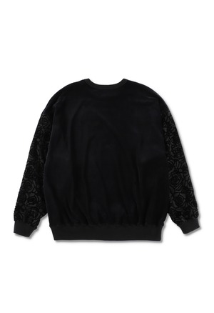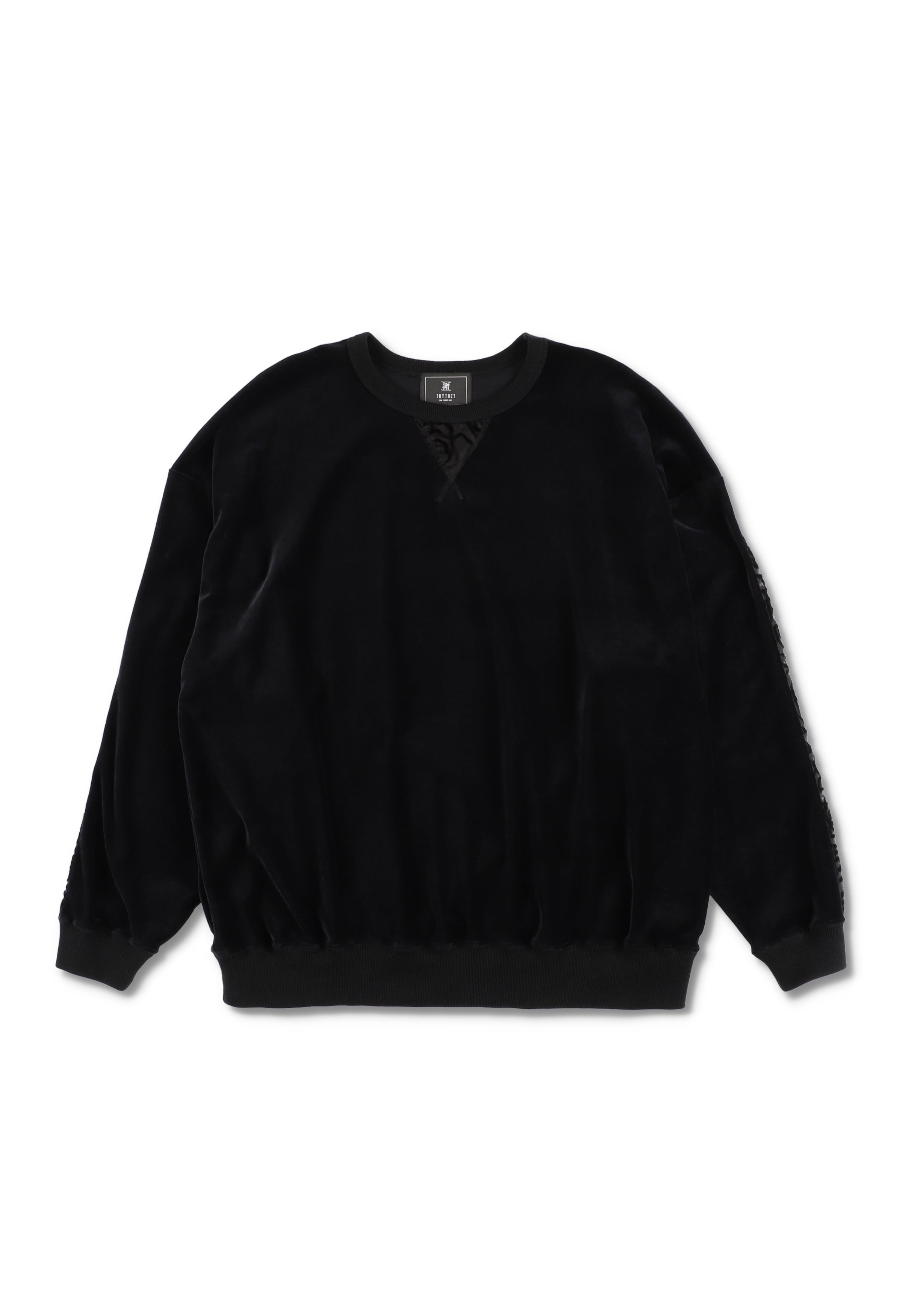 肉厚なコットンベロアのプルオーバーにオリジナルベルベットをパーツで使用。フライスのバインダー処理やガゼット使いなどミリタリースエットから着想。