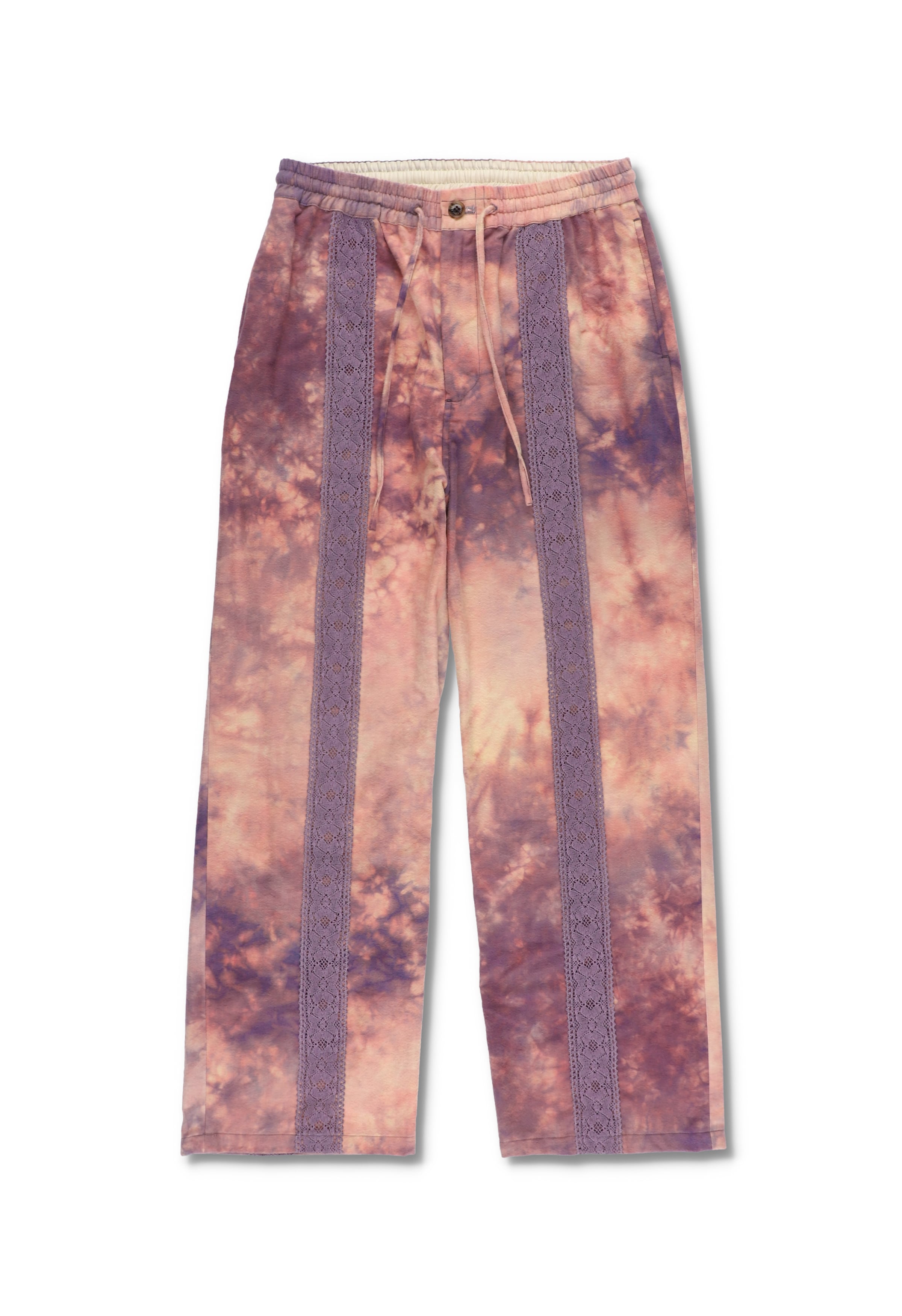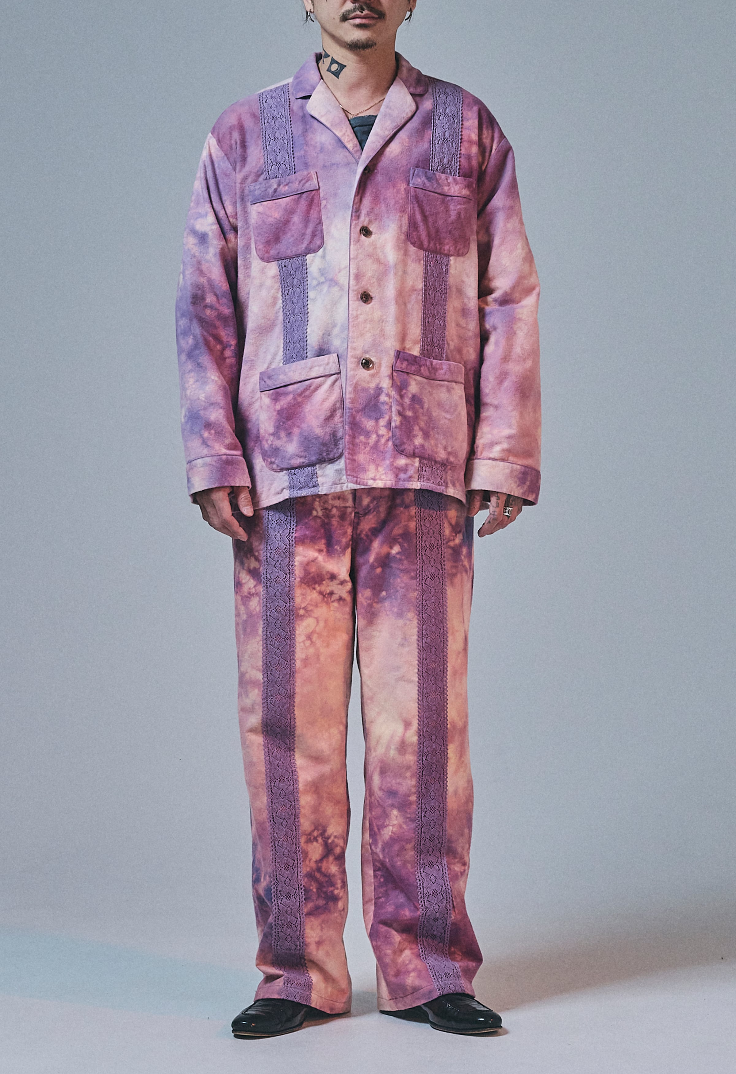 両面起毛のフランネルにムラ染めを施したイージーパンツ。トップス同様、身頃にレースを配置。肌触りの良い起毛感、セットアップでの着用が◎。