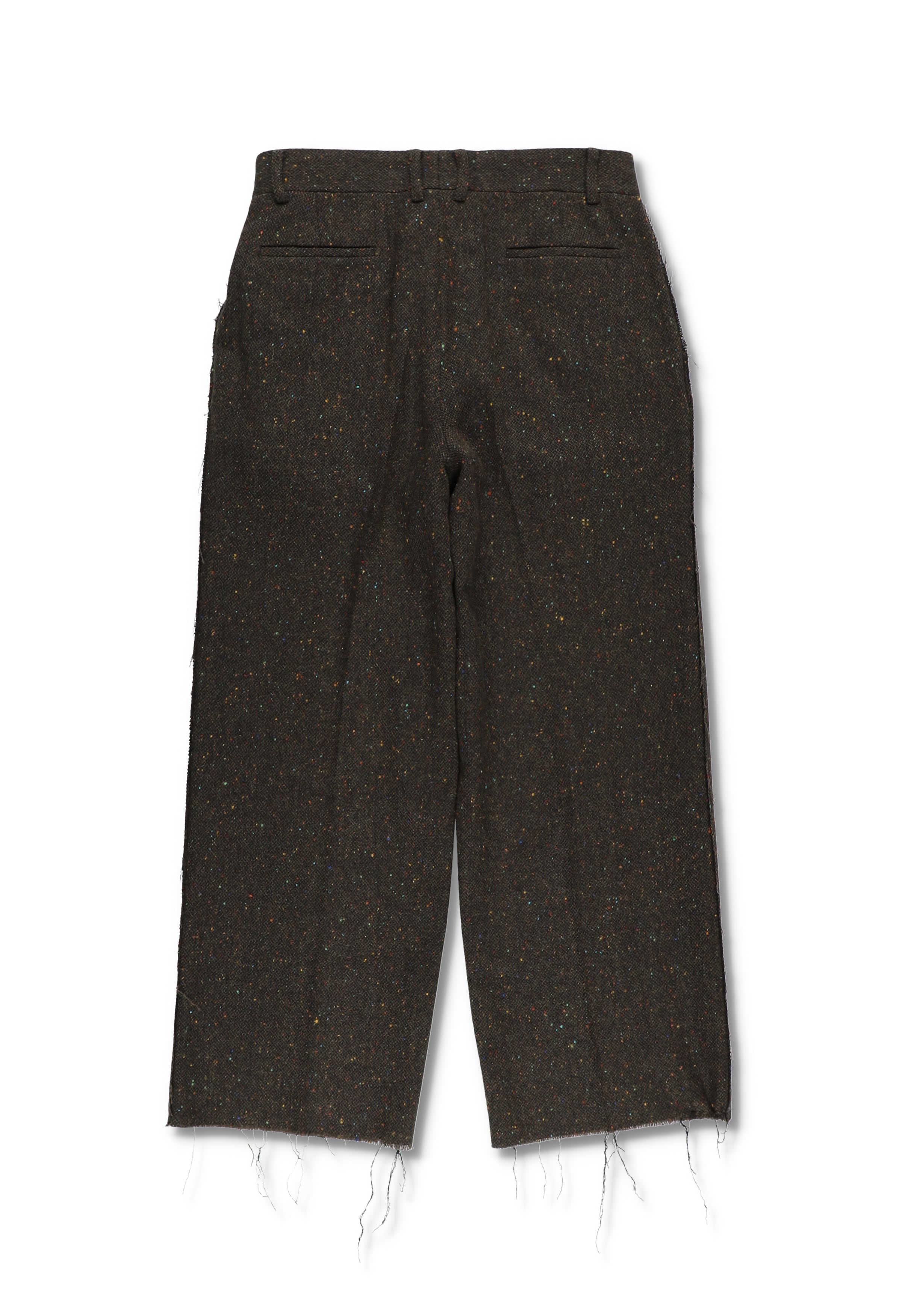 カラーネップを含んだ、柔らかく落ち感のあるツイードトラウザー。ややゆとりのある、2タックトラウザーを部分的に断ち切りで仕上げている。腰裏にはブランドロゴが入ったオリジナルマーベルトを採用。