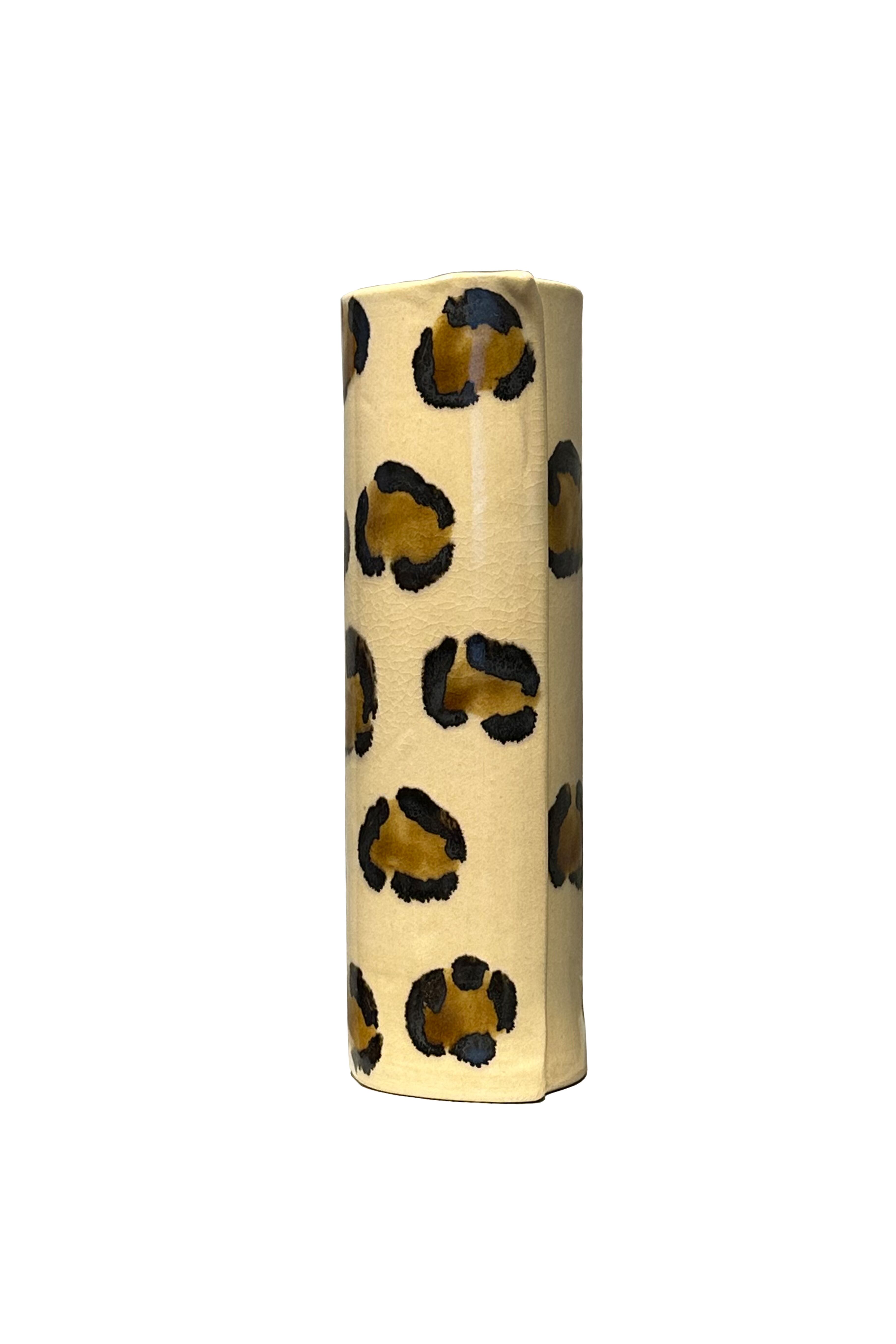 沖縄は読谷にて製作した、やちむんフラワーベース。温かみのあるやちむんらしい色合いにカラフルな模様を描いています。専用桐箱付き。