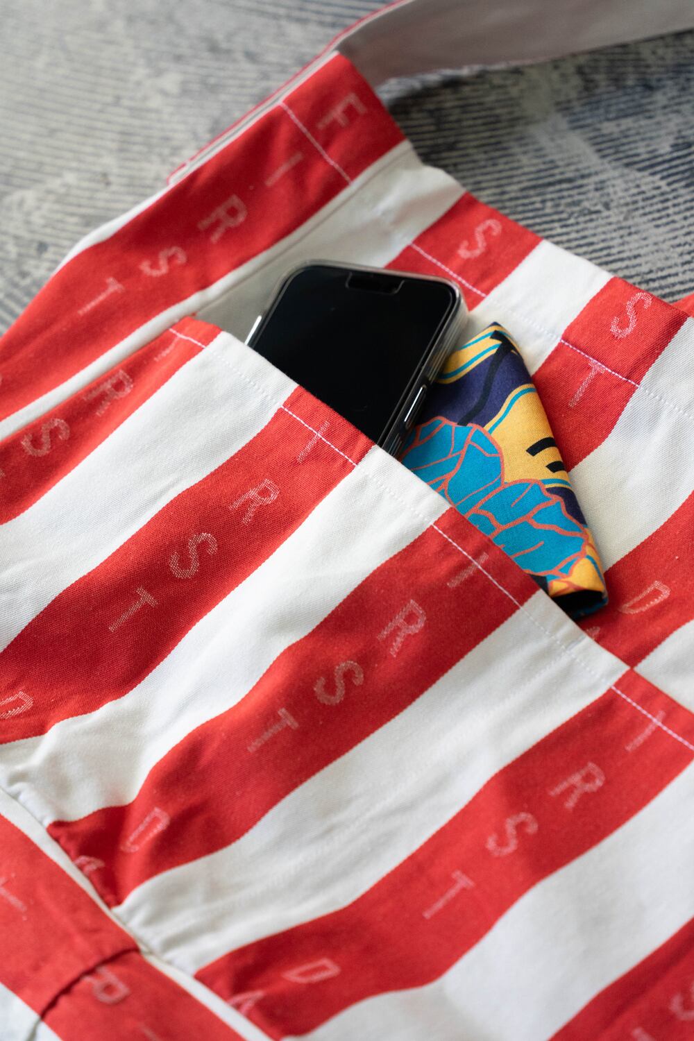 緯糸にムラ糸を使用し、ヴィンテージ感のある凹凸とムラ感を表現したオリジナルツイルジャガード。ショルダーストラップとトートハンドルが付いた2WAY仕様のバックです。アウトポケットも搭載しており、使い勝手も◎。